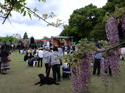 昨年も和太鼓ショーに遭遇!今年も今日が最終の披露とのことで、いっぱいの観客となりましたね…女性和太鼓ショーですが迫力満点!皆さん、有難うございました!来月も楽しみしていますね…(^_^)v以上、和気公園藤まつりの風景画像でした!明日は大雨洪水注意報が発令されています。注意しましょう!