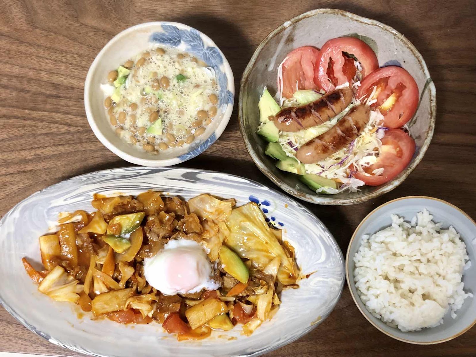 他に、アボカド納豆とろろ入り、ミックスキャベツとトマト🍅サラダ🥗❣️