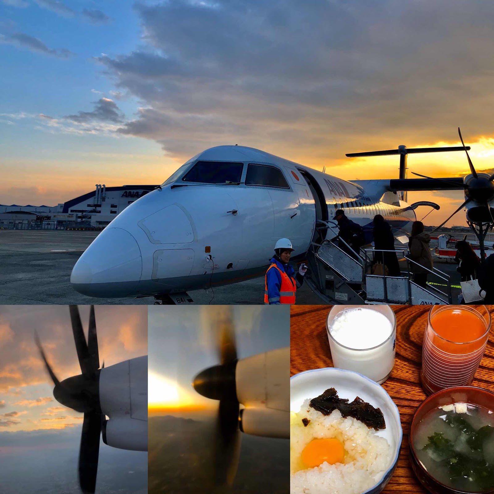 大阪空港16時40分発の鹿児島空港行きで無事肝付町自宅に到着致しました。天空では美しい夕焼け広がっていました。ディナーはシンプルに卵かけご飯と味噌玉味噌汁、舞昆も凄く美味しいです☺️