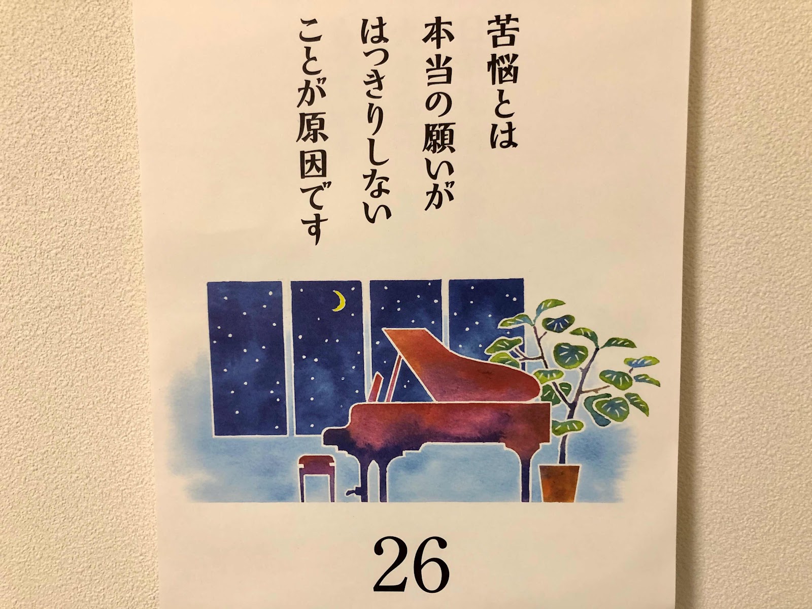 今日に日めくり法話言葉、「苦悩とは本当の願いがはっきりしないことが原因です」