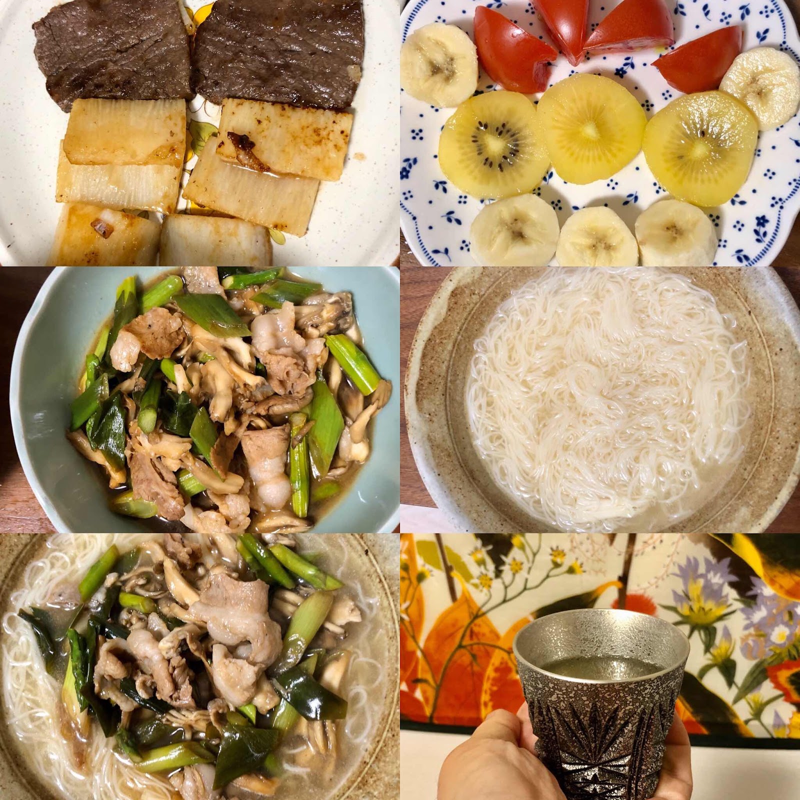 また牛肉スライスステーキと山芋、果物、今宵もバランス良く美味しくいただきました。