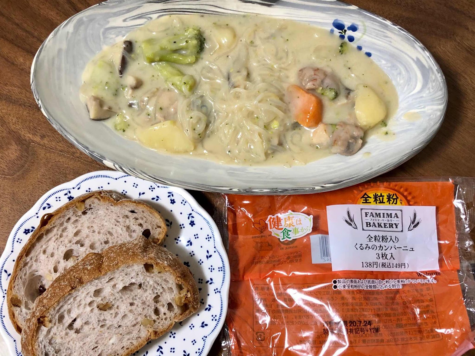 食物繊維は2.2g(グルコマンナン)、ご飯なしでもお腹が収まります🤗私はブランチだったので、くるみのカンパーニュ二枚と頂きました。蒟蒻が入っているのでパスタ同様、forkとspoonで頂きました。