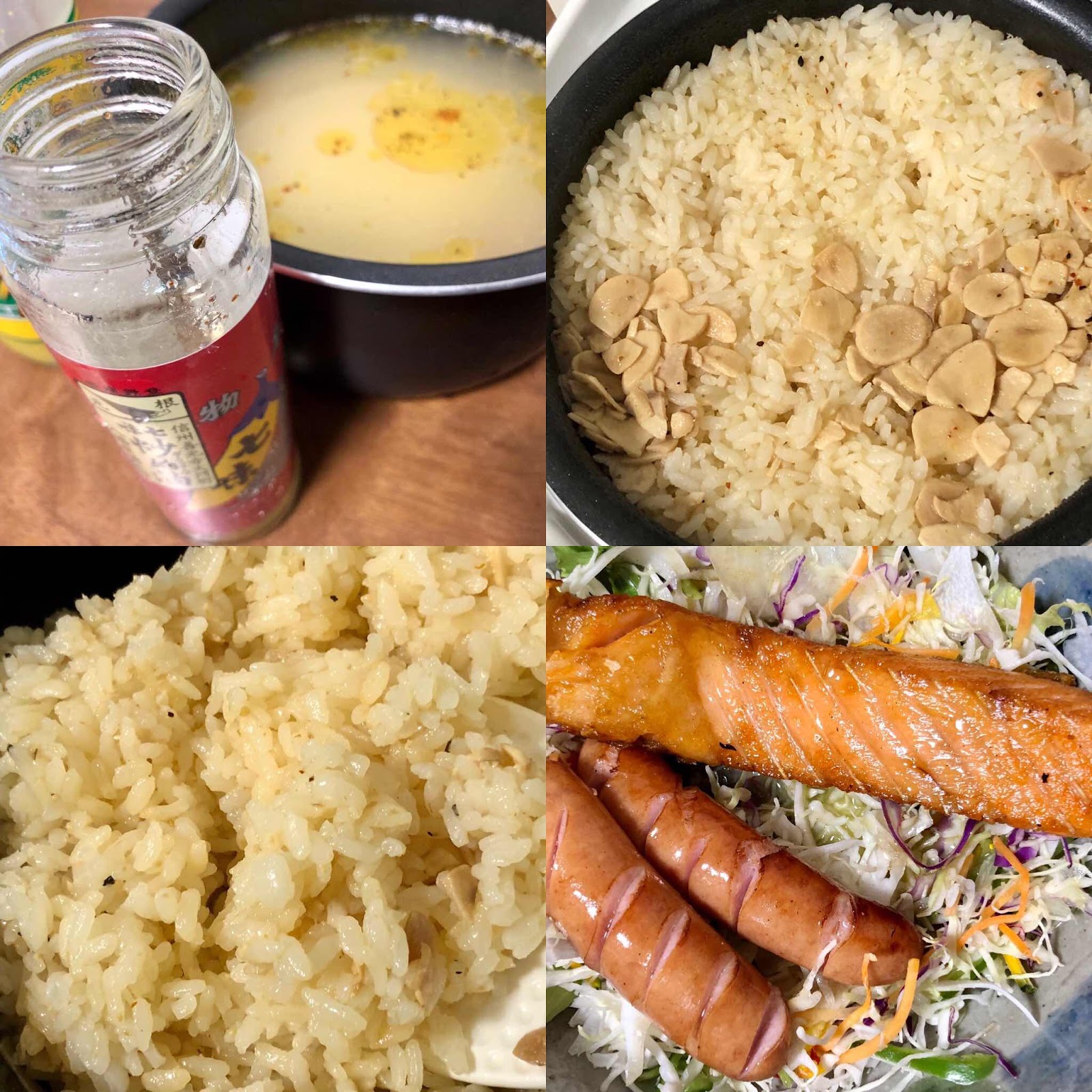 ニンニクのいい香りのガーリックレモンライス出来上がり、美味しくいただきました。