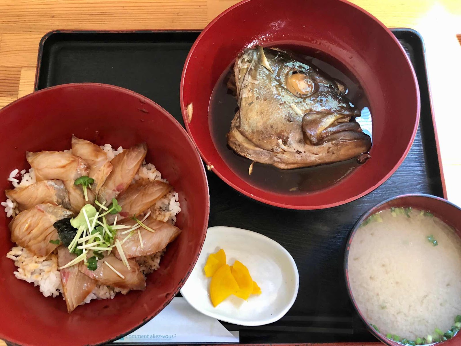 午後1時30分に鹿屋市古江港にあるみなと食堂のかんぱち漬け丼は、この時間で30分待ち、超人気店です。