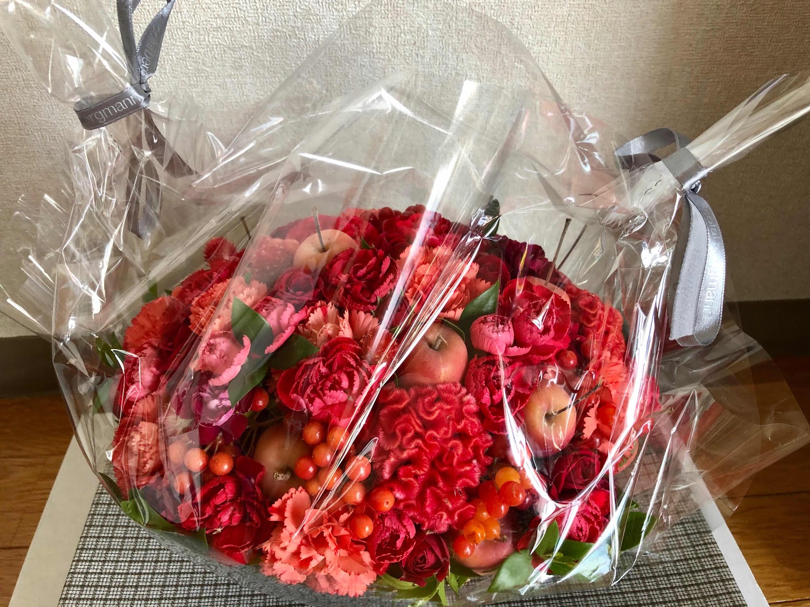 朝はプレゼントして頂いた貴重なプリザーブドフラワー(生花ですが)眺めて朝食食べました。