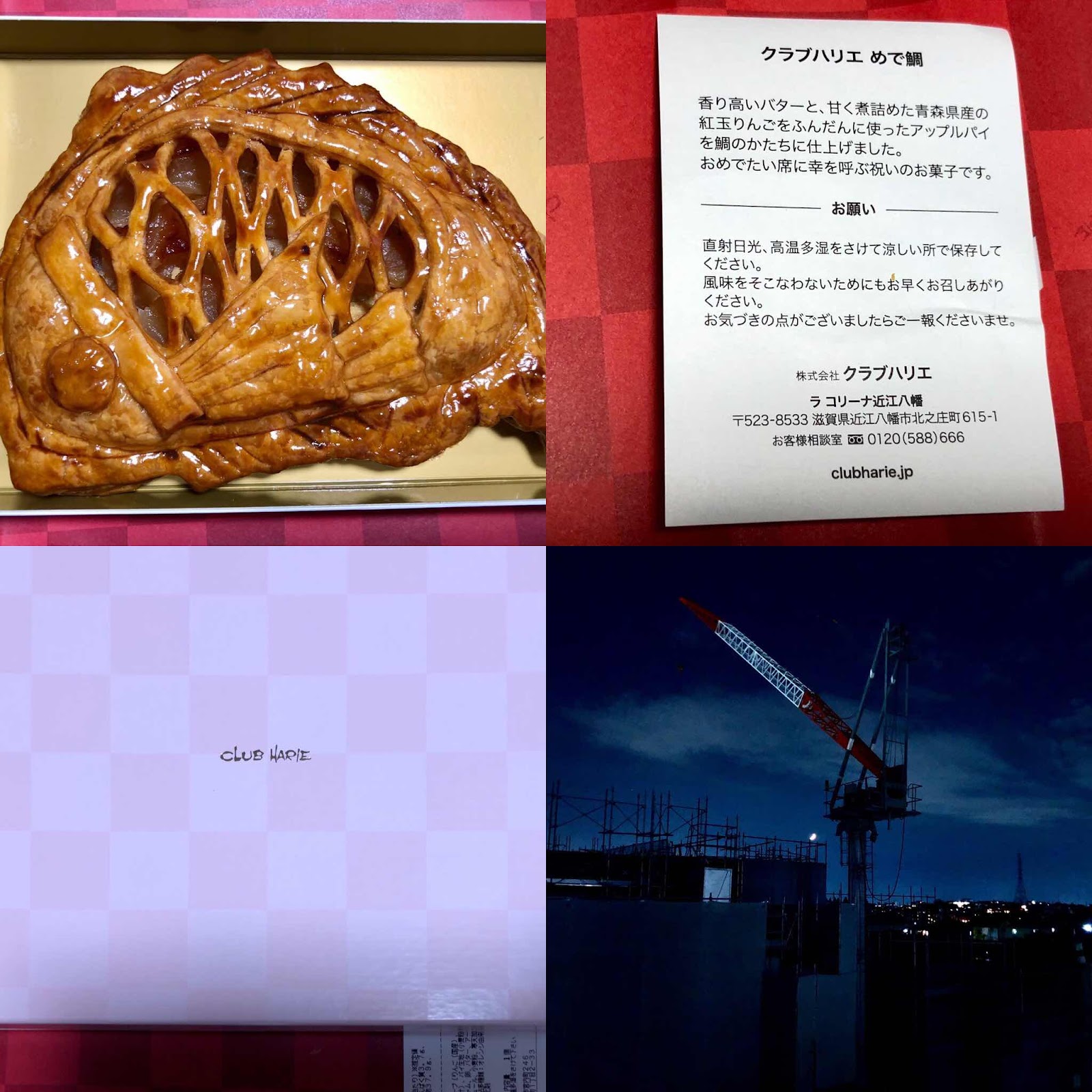 友人夫妻からお気遣いのめで鯛、美味しいアップルパイ🍎🥧頂きました。美味しかったです。日々少しずつ頂き噛み締めます。三日月綺麗でした。