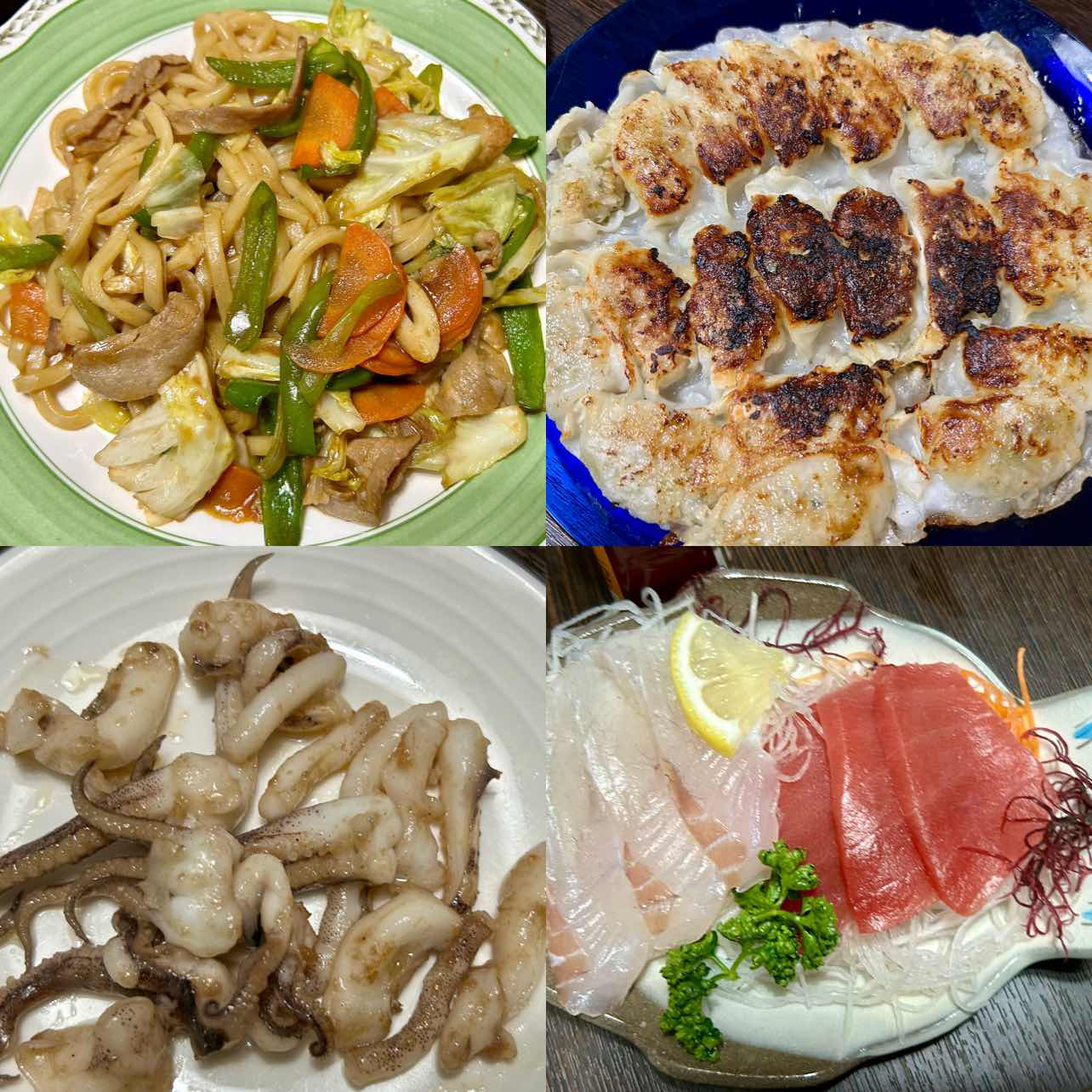 今日は部屋の模様替え、予定通りスッキリ気分一心です。夕食は焼きうどん、丸岡餃子、ゲソのバター焼き、お刺身、ビールと日本酒で乾杯🍻🍶