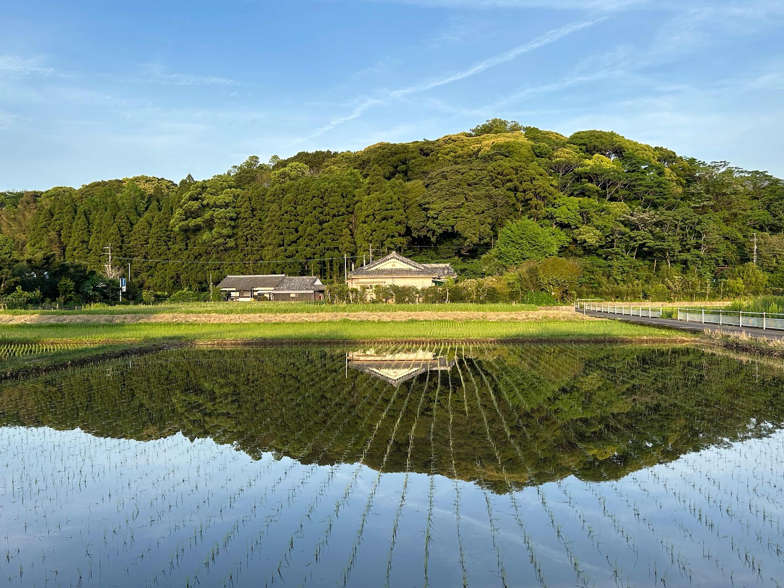 今日の夕暮れ、夕空も、田園風景も、夕陽と共に
