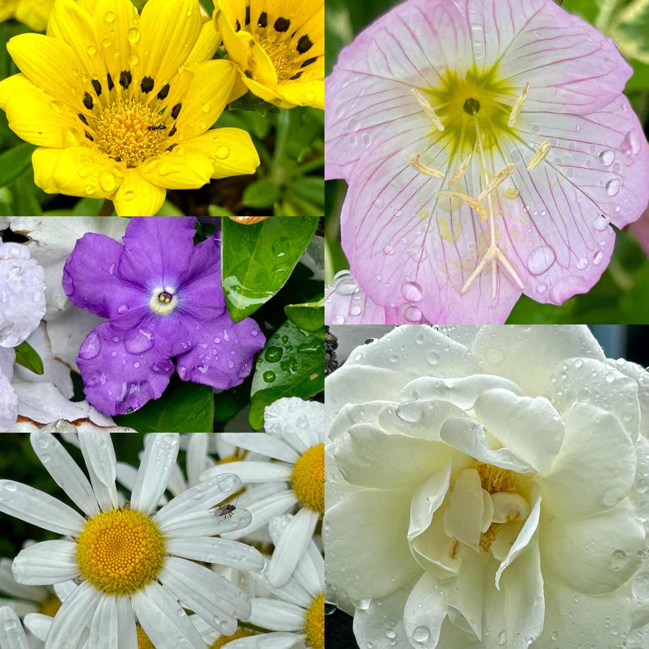 午前中は激しい雨振りでしたが、お昼から上がったので散策、雨滴がお花や葉っぱに付いて素敵に見えています。美しい雨上がりのお花達で気分リフレッシュです。