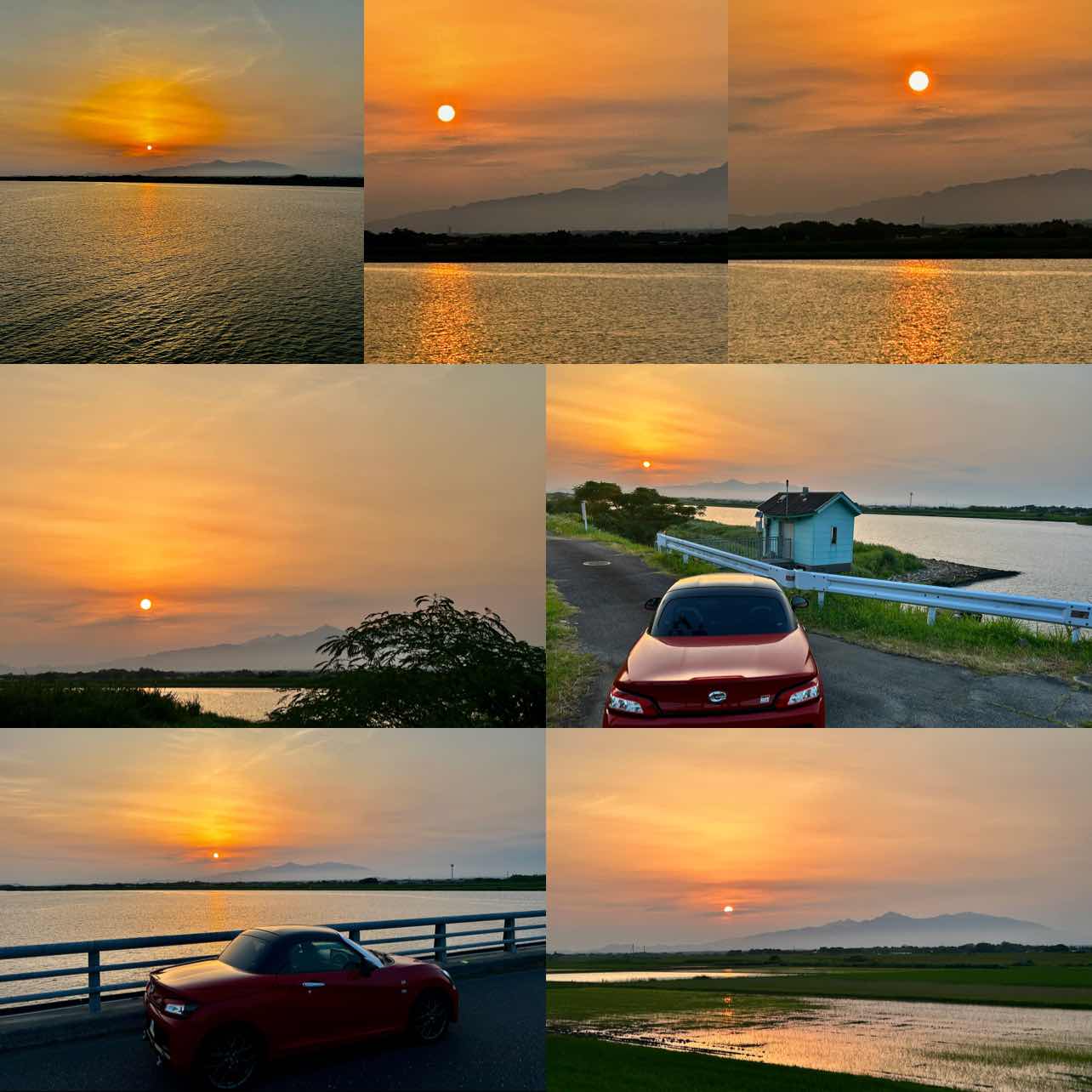 夕方18時半、車を7キロ先の波見の橋へ夕陽撮影に行きました。雄大な風景に夕陽綺麗でした。