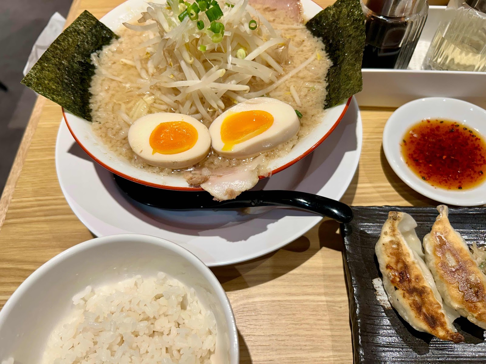 昨日の夕食は、新潟駅で和風豚骨ラーメン🍜と半ライスと半餃子🥟、味はちょっと薄め、お腹いっぱい満足でした。今宵は村上で晩酌セット、お刺身が日替わりで嬉しいです☺️