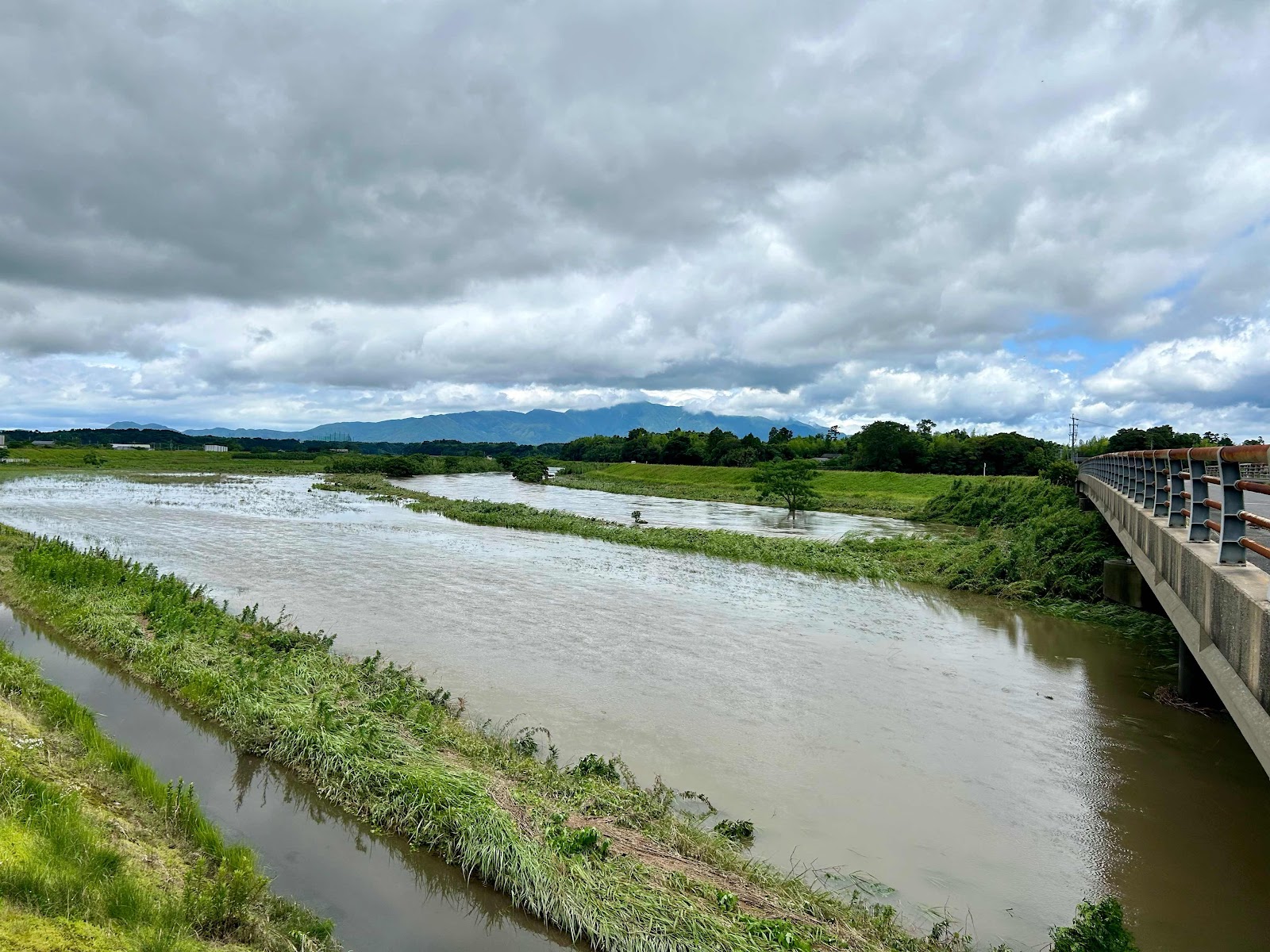 鹿児島市から肝付町に戻って来ましたが、肝付町では河川が増水、田園も大雨で浸水、大海原の様になっていました。何とか遠回りして自宅に戻れました。