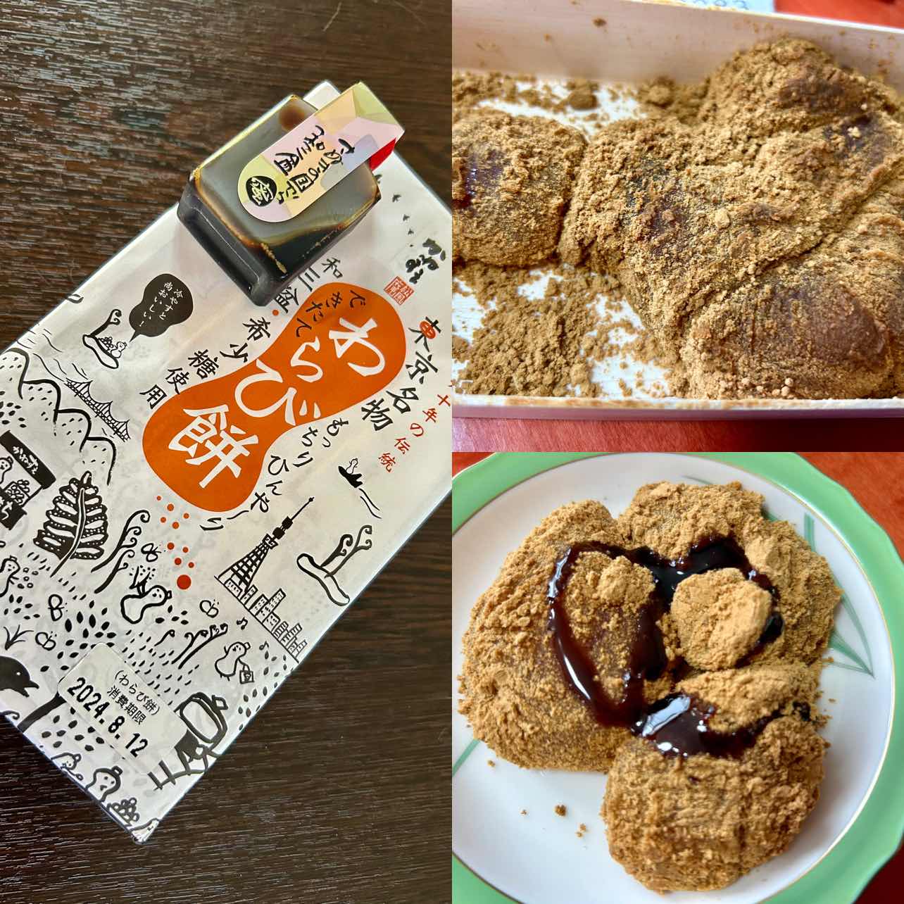 お土産にわらび餅買って帰り、10時のデザートとして頂きました。もっちりきなこも黒蜜も最高!夏にぴったりのわらび餅でした。
