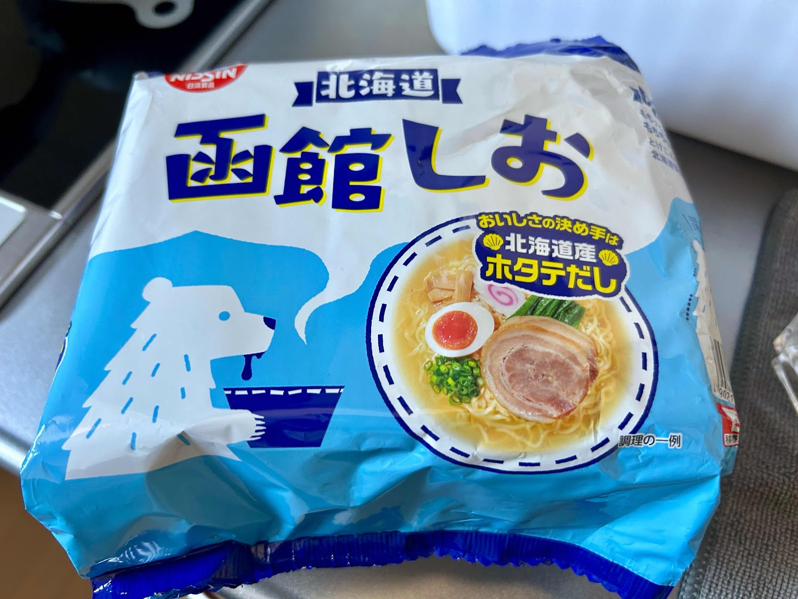 日清のラーメン屋さんの函館しお、北海道産ホタテだし、看板に偽り無し、スープあっさりで美味しいスープ、スープまで完食でした。