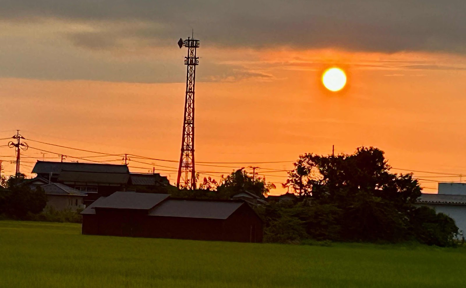 帰宅時の夕陽真ん丸でとても綺麗でした。