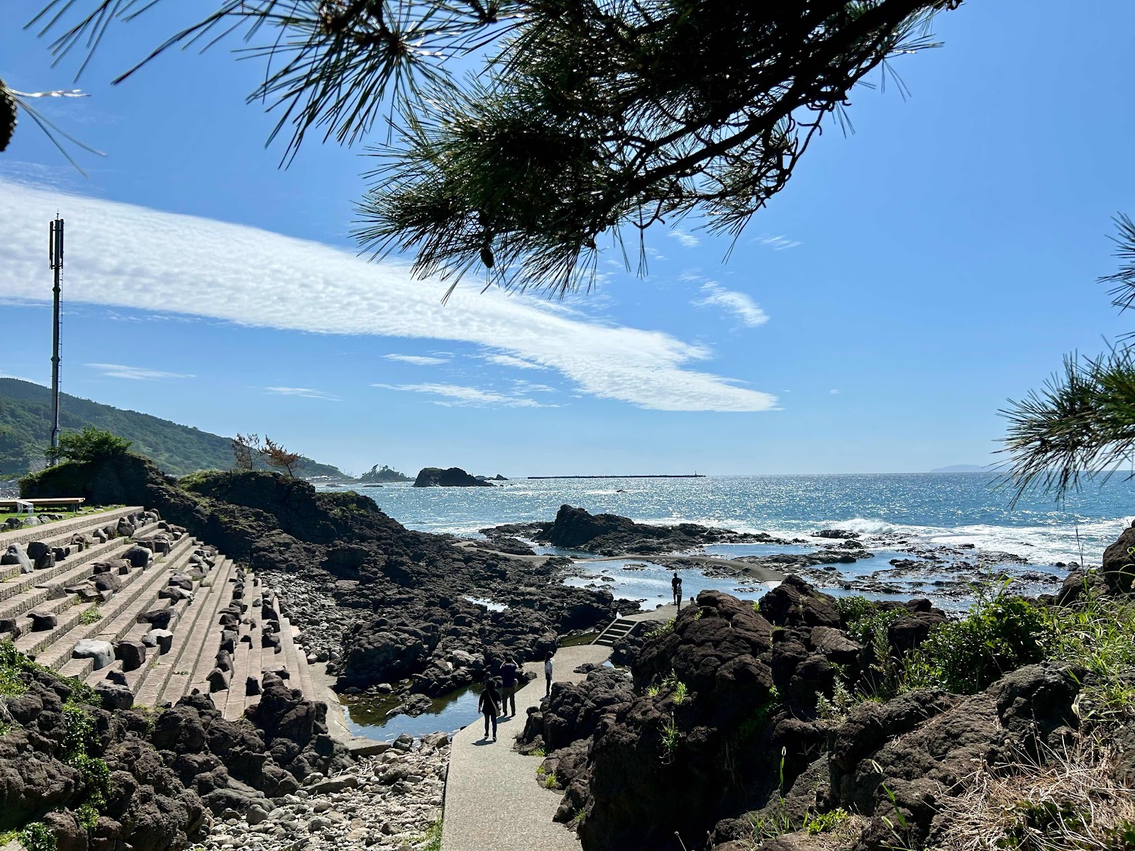 今日は凄くいいお天気、そこで山形県鶴岡市の日本海側へドライブ、青空に青い海、永遠に続く水平線、岩にぶつかる波飛沫、いいドライブできました。