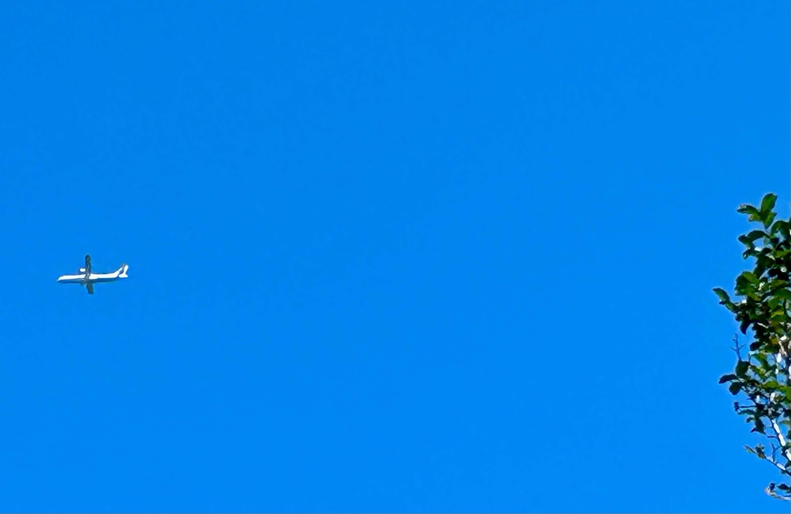 今日の天気は晴れ、空は真っ青の秋空 秋晴れ、高速のパーキングで上空にジェット機が、綺麗に見えました。今日も往復200キロの移動でした。