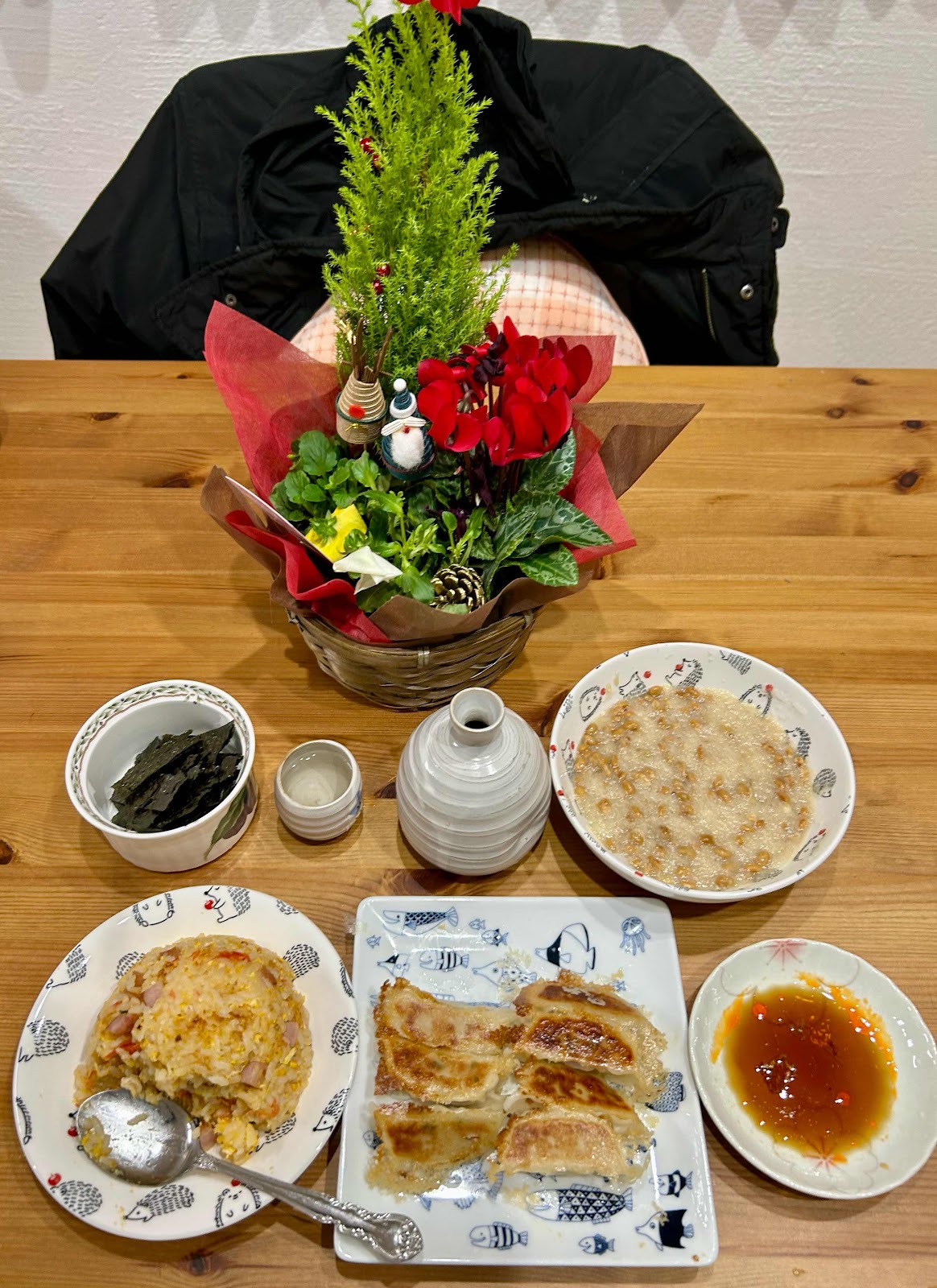 今朝は穏やかな朝、出勤です。お昼は大雨、明日は雪模様、北国の冬満喫です。昨夜は炒飯餃子で熱燗楽しみました。