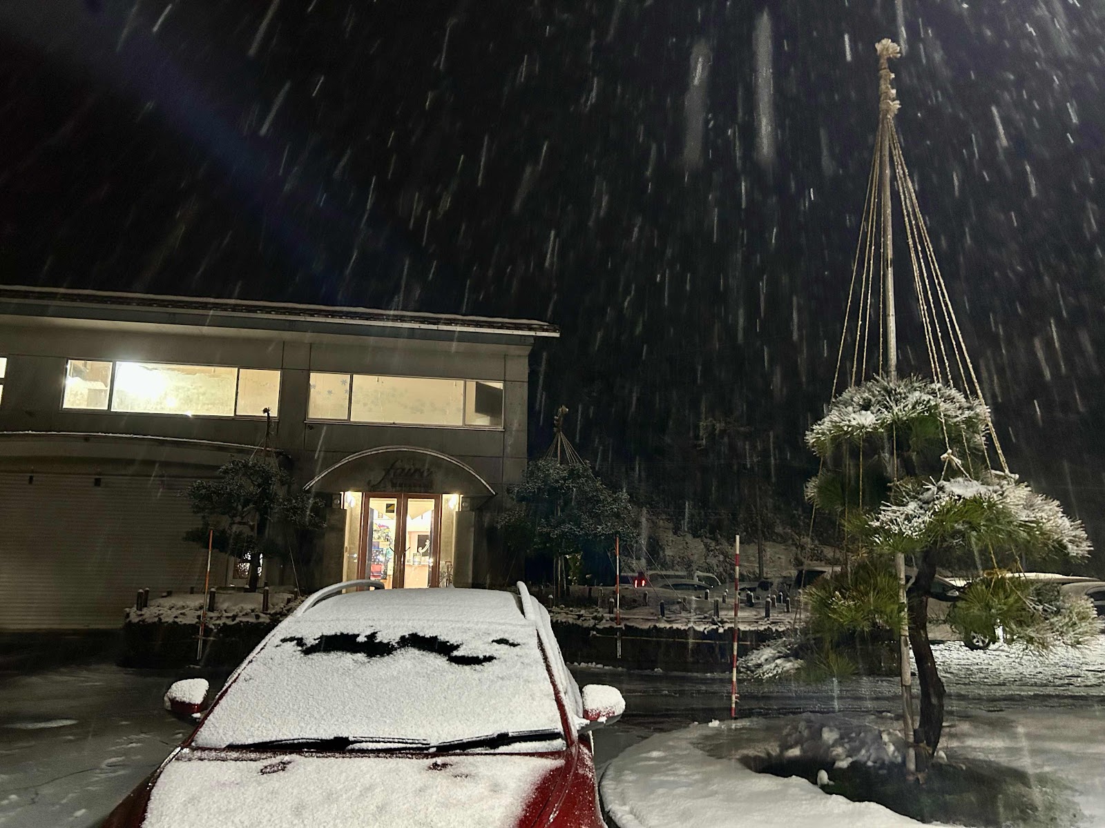 会社から帰宅時も雪降り、雪祓いして帰宅!