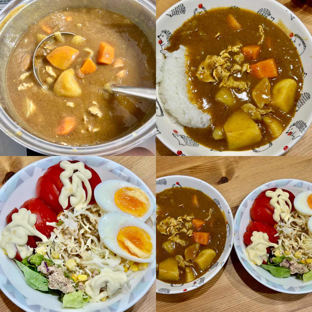 今宵はカレーライスとトマト野菜サラダ&ゆで卵