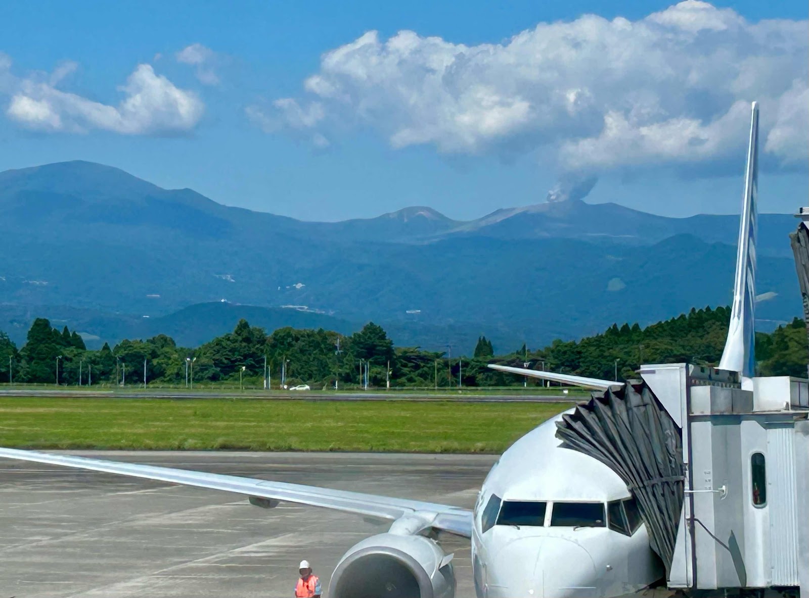 今日 大阪から自宅に戻りました。鹿児島空港から霧島連山の新燃岳噴煙あげているのが見えました。