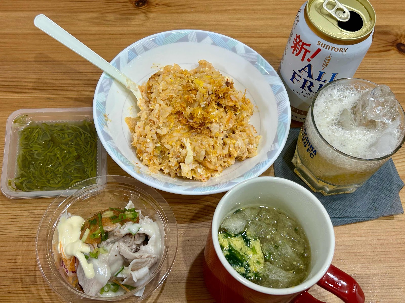 今宵はキムチシーチキン炒飯作りましたが柔らかくなってしまいましたが味は美味しいです😋